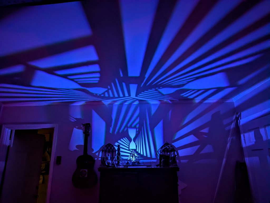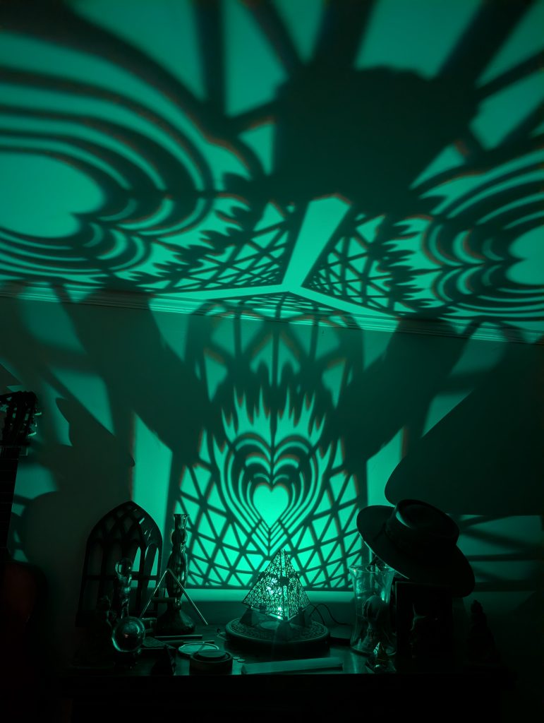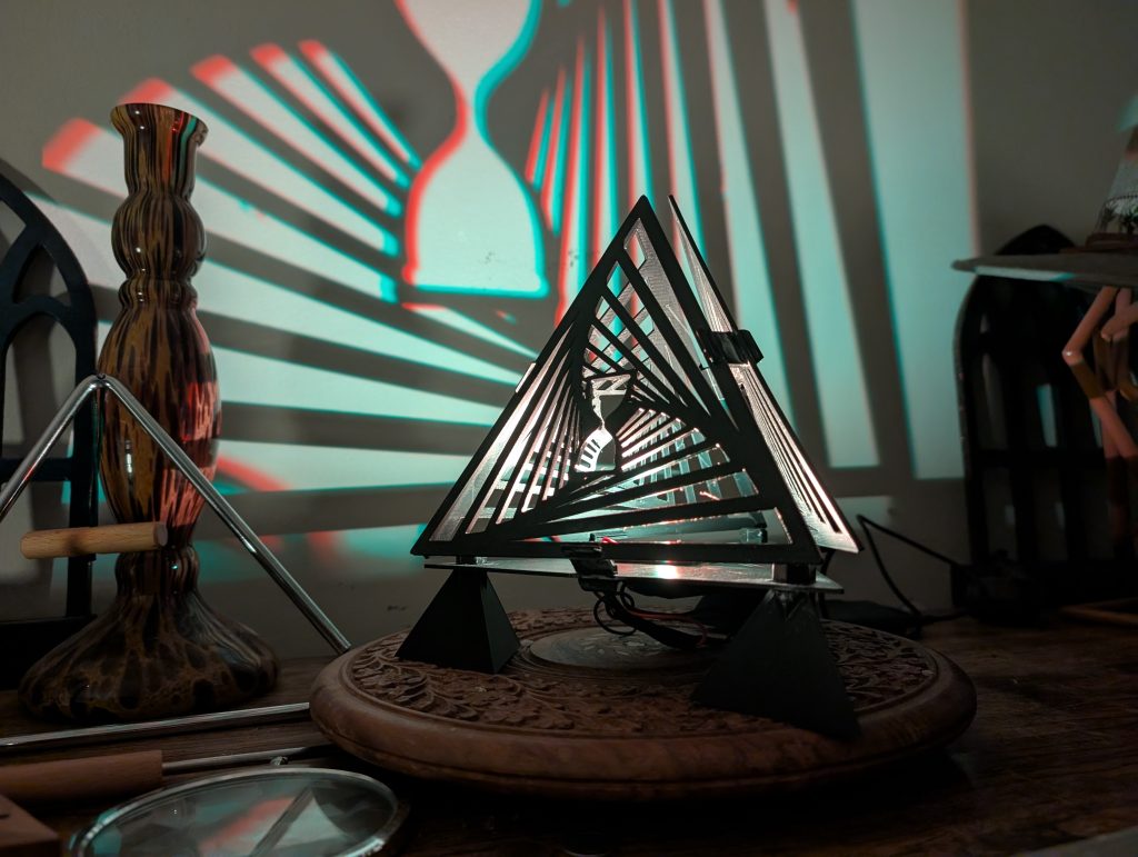People kept asking for a more affordable version of my large steel ShadowCaster Lamps, so I created the ShadowCaster Mini – a 10-inch tetrahedral lamp that delivers the same immersive geometric patterns in a smaller, more accessible form.